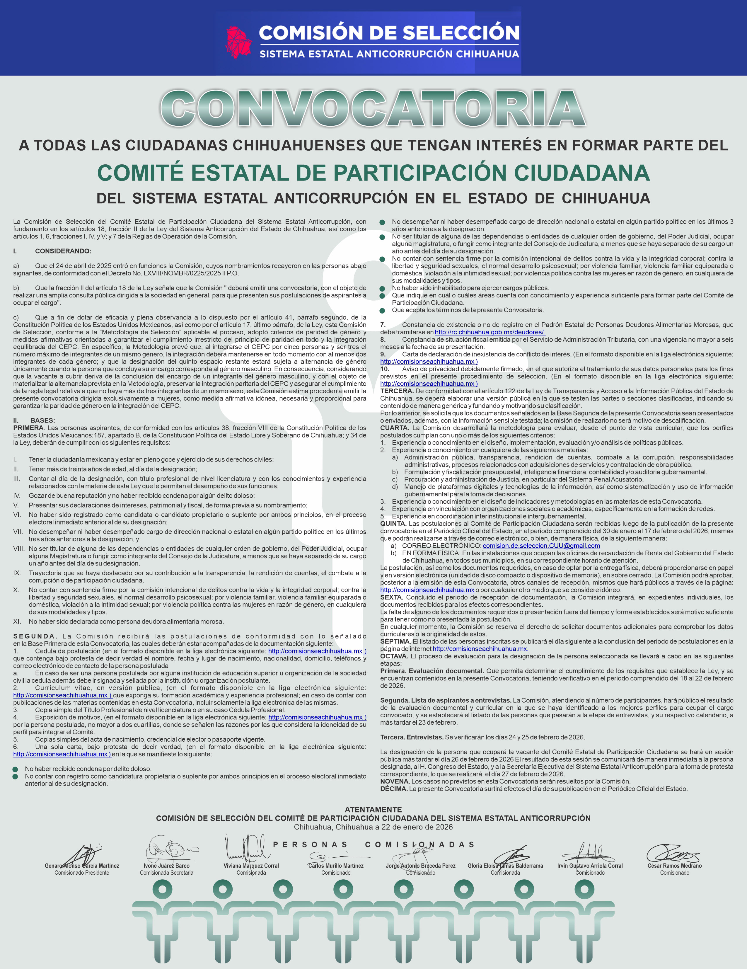 Órgano responsable de la designación del Comité de Participación Ciudadana (CPC) en el Estado de Chihuahua.